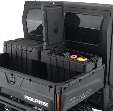 - This versatile, high-capacity Cargo Box installs securely in the cargo bed in just seconds using Polaris-exclusive Lock & Ride® technology