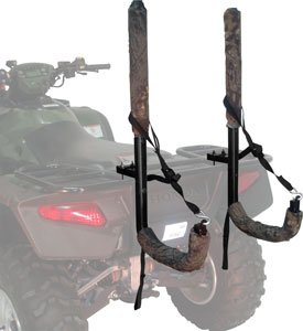 Power-Pak Tree Stand Carrier by Great Day mounts to a rear ATV rack for easily transporting a tree stand to a desired hunting location. Features (2) camouflage covered support arms with black tie-down straps. The snug fit ensures your tree stand will not rattle during travel. Made with high quality aircraft-grade aluminum for long lasting durability.