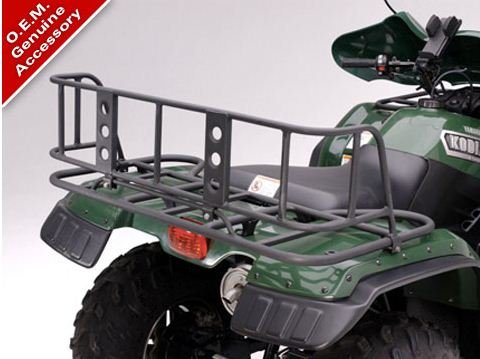 The Yamaha ATV Deluxe Rear Rack Extension is a Genuine Yamaha O.E.M. product. This rack features durable steel construction and is powder-coated wrinkled black to match your stock rack. Powder-coated steel construction for durability. Features a special wrinkle finish to match your stock rack. Helps keep rack loads in place. Fits the Following Yamaha Models: Big Bear 400 IRS 2007-2011; Grizzly 450 2007-2012; Kodiak 450 2003-2006.